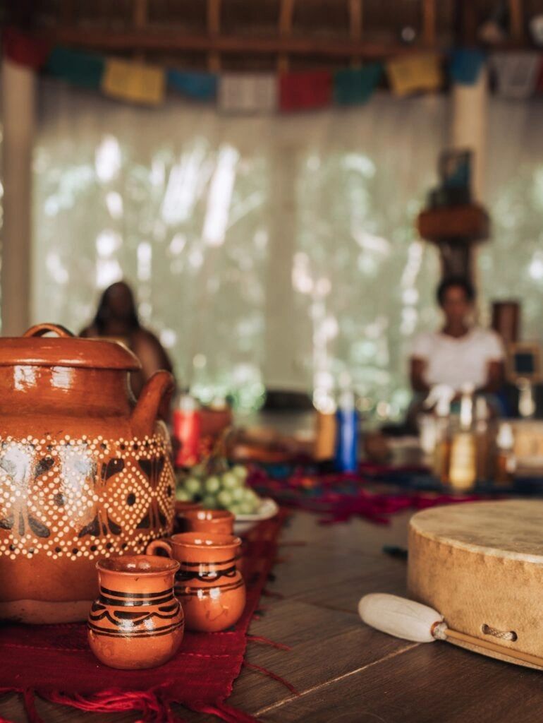 Es una práctica ancestral y espiritual que honra al cacao como planta sagrada. Tiene raíces profundas en las culturas prehispánicas, especialmente entre los mayas y mexicas, quienes consideraban al cacao un regalo de los dioses y lo utilizaban en rituales, ofrendas y como moneda.
